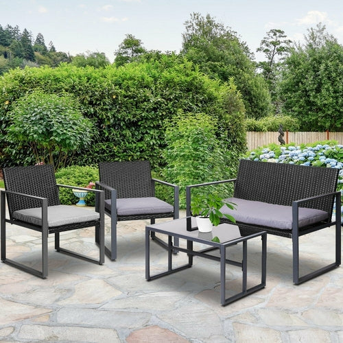Great for any balcony or patio area, our Gardeon 4-pc Outdoor Set simply looks inviting and elegant from any angle. From its sturdy powder-coated frame and UV-resistant PE wicker to the ultra-comfortable 1000g cotton-filled 5cm thickness cushions and 5mm tempered glass table top, the set is simply finished in extraordinary workmanship. The cushion covers are almost removable and washable for easy maintenance. Best of all, you need not use it just for the outdoors, as this marvellous set is just as appealing in your living room, bedroom or any room that deserves its fine presence.